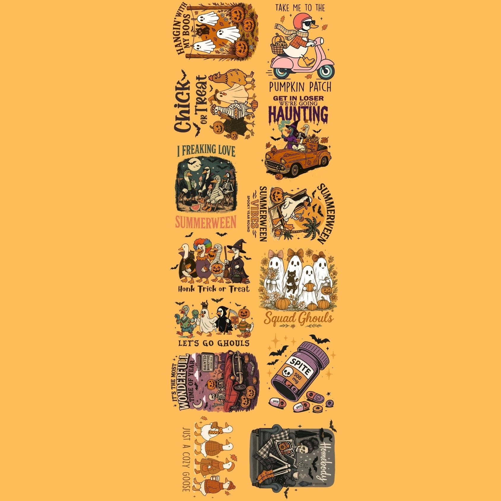 Halloween Spooky Goose premade DTF gang sheet, Halloween Prints, Halloween Transfers, Goose Halloween transfers, Spooky transfers